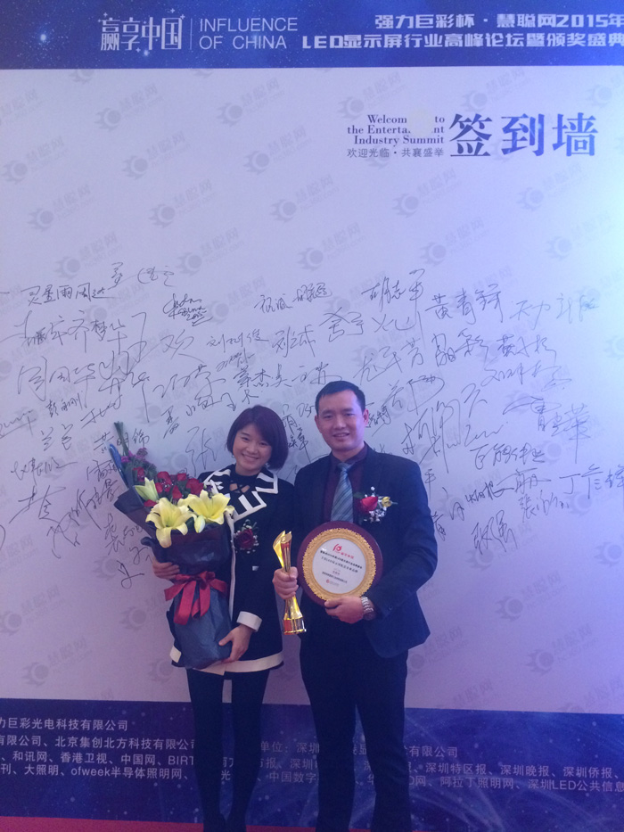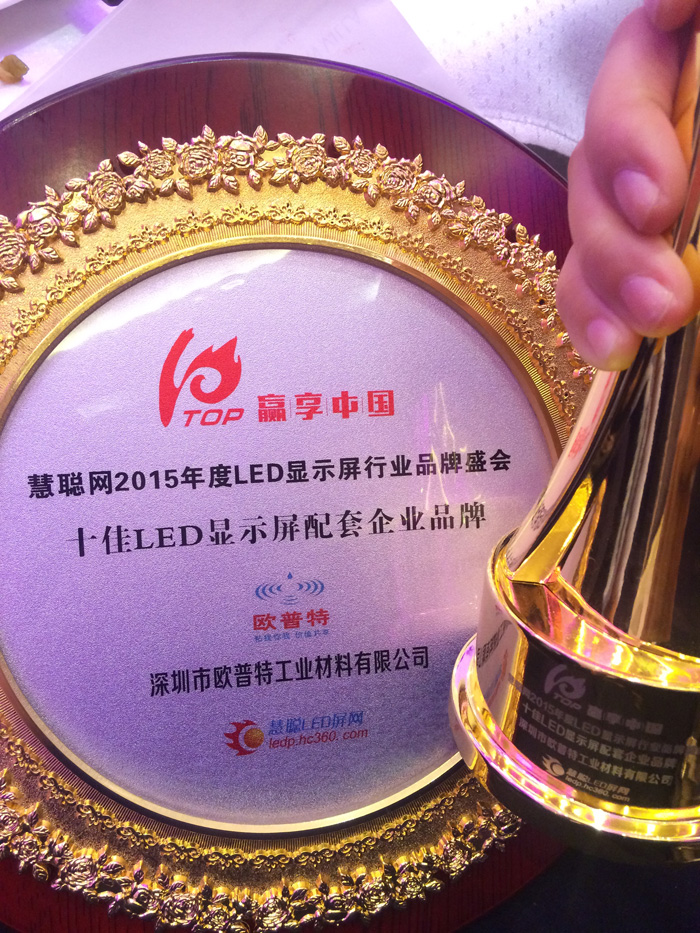 贏享中國(guó).強(qiáng)力巨彩杯2015年LED顯示屏行業(yè)高峰論壇暨頒獎(jiǎng)盛典12月15日在深圳西麗麒麟山莊順利召開(kāi)。恭喜得獎(jiǎng)的各位行業(yè)大伽及企業(yè),同時(shí)也恭喜深圳歐普特工業(yè)材料有限公司獲得十佳LED顯示屏配套企業(yè)品牌