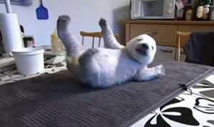 在2011年圣誕節(jié)期間,動(dòng)物園在網(wǎng)上公布了一段斯庫(kù)的視頻,結(jié)果引發(fā)瘋傳。這個(gè)可愛(ài)的小家伙擺出各種動(dòng)作,一會(huì)兒懶洋洋地伸懶腰,一會(huì)兒在桌子上打滾,還伸出可愛(ài)的粉色小爪子抱住飼養(yǎng)員。最讓人招架不住的則是它瞇著眼睛沖著鏡頭咧嘴笑,還不時(shí)伸出小舌頭舔自己的臉。