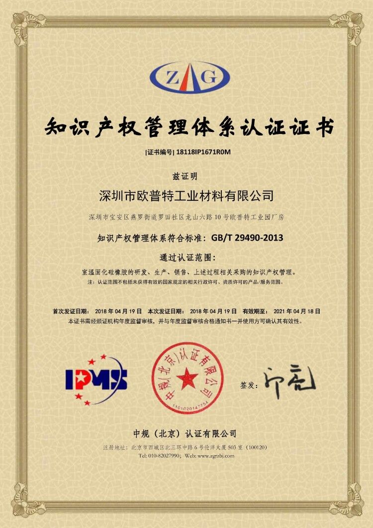 2018年4月19日,歐普特正式獲得由中規(guī)(北京)認(rèn)證有限公司頒發(fā)的"知識(shí)產(chǎn)權(quán)管理體系認(rèn)證證書(shū)”,證書(shū)的取得標(biāo)志著我司的知識(shí)產(chǎn)權(quán)工作邁上了新的臺(tái)階。2018年,歐普特走在眾多企業(yè)前端,順利完成了知識(shí)產(chǎn)權(quán)管理體系導(dǎo)入工作,使公司的知識(shí)產(chǎn)權(quán)創(chuàng)造、運(yùn)用、保護(hù)和管理水平得到了切實(shí)規(guī)范和提升;且引入的知識(shí)產(chǎn)權(quán)風(fēng)險(xiǎn)預(yù)警和防控程序,從而建立內(nèi)部研發(fā)到外部銷(xiāo)售的全線(xiàn)防控。通過(guò)知識(shí)產(chǎn)權(quán)的運(yùn)營(yíng),持續(xù)提升公司的無(wú)形資產(chǎn)價(jià)值,讓知識(shí)產(chǎn)權(quán)真正成為企業(yè)的核心競(jìng)爭(zhēng)力,使企業(yè)在激烈的競(jìng)爭(zhēng)中占領(lǐng)市場(chǎng)至高點(diǎn),在復(fù)雜的經(jīng)濟(jì)環(huán)境中始終立于不敗之地。