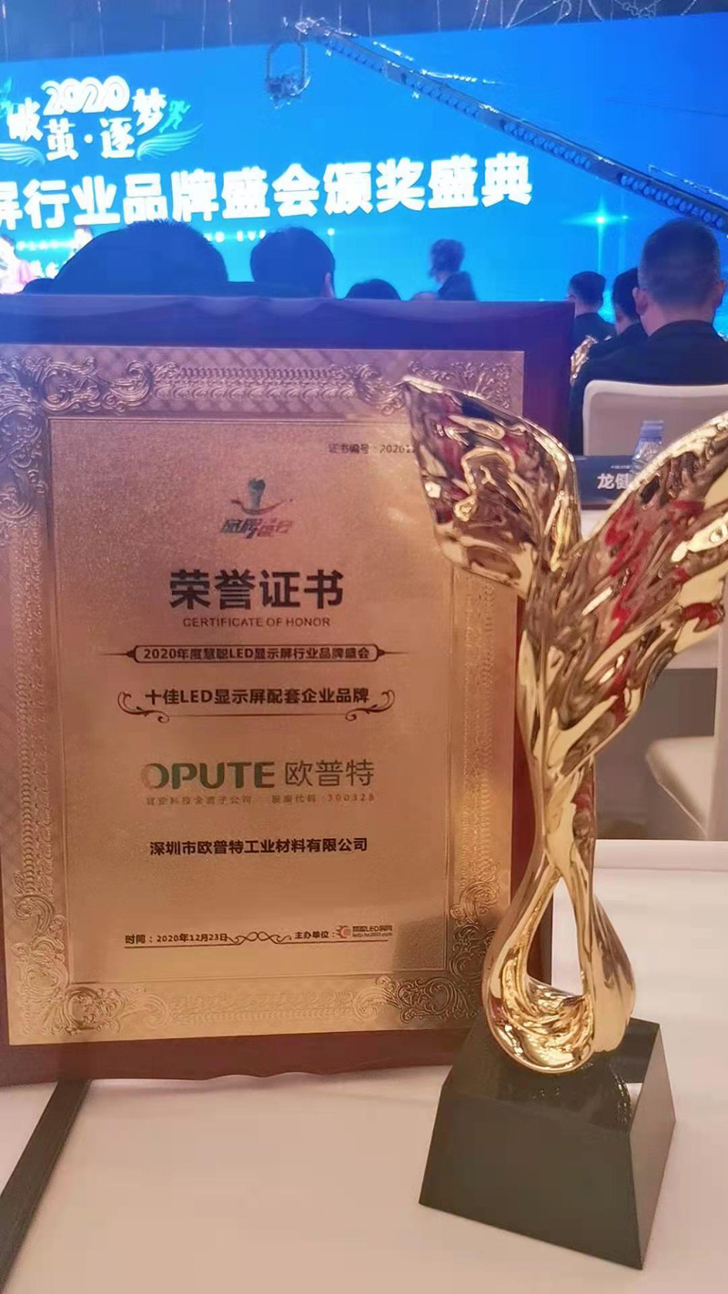 輝煌時刻,歐普特再度獲得2020年度十佳LED顯示屏配套企業(yè)品牌.
