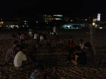 10點(diǎn)半,勾火晚會(huì)結(jié)束了,大家流連忘返,似乎沒有回房間睡覺休息意識(shí),于是又組織了"找內(nèi)奸"游戲,這個(gè)游戲深刻的體現(xiàn)了大家的反應(yīng)能力和觀察能力和自我保護(hù)能力,直到凌晨1點(diǎn)左右,大家才依依不舍的回房間休息.