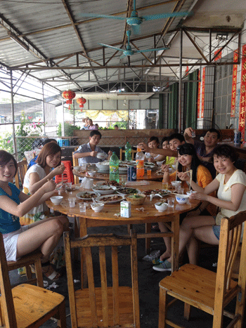 第二天午餐我們?cè)谝患倚∞r(nóng)家餐館吃的,值得一提的是,,這里有一道特別的菜----我們自已打的海鮮。大家嘗到了正真的海鮮-----原滋原味,有鮮又嫩。果然味道好極了!讓我們個(gè)個(gè)回味無窮.