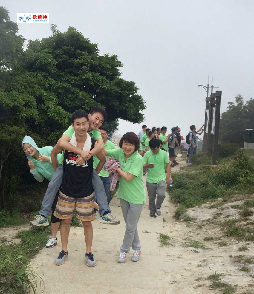 當然每位小伙伴們體質(zhì)不一樣,有人一路狂奔,也有人慢慢落后,我們商務美女小希本來三分之一路程已然到達體能局限,準備放棄,此時我們老大蔣帥伸出了他有力的大手,并不斷的鼓勵,誘導小伙伴設立自己小目標,然后到達終點。這正是我們歐普特人不放棄,不拋棄每一位家人。使我印象最深刻的是:當最后一位小伙伴沖向山頂,一起和團隊擁抱匯合的時候,我們留下了激動喜悅淚水。人一定要有自己設定的目標,并把他一一分解成每一個小目標,逐一完成,建立自己的信心,直至完成終極目標!